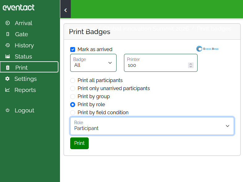 A. Printing from Eventact Arrival (Recommended for Desk Staff)